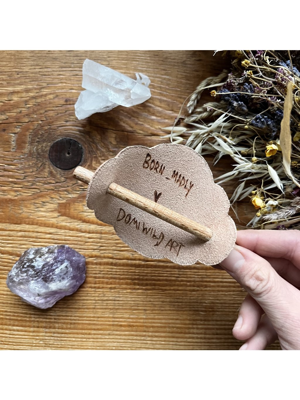 Spony vznikly propojením dvou kreativních duší z Beskyd. Maggie (born_madly) je vyrobila a já jsem je dozdobila ručním vypalováním. Jedná se o jedinečné kousky, které když neztratíte, budou Vám sloužit navěky. Jsou vyrobeny z pravé hovězí usně v přírodní barvě a ošetřeny pouze včelím voskem, takže si časem získají svou osobitou patinu.