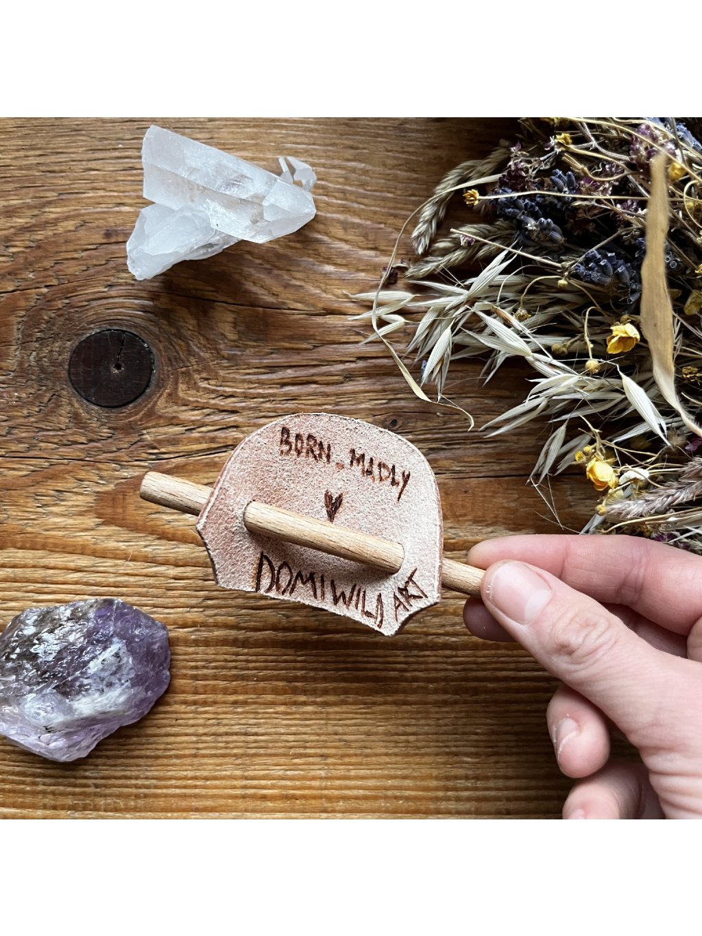 Spony vznikly propojením dvou kreativních duší z Beskyd. Maggie (born_madly) je vyrobila a já jsem je dozdobila ručním vypalováním. Jedná se o jedinečné kousky, které když neztratíte, budou Vám sloužit navěky. Jsou vyrobeny z pravé hovězí usně v přírodní barvě a ošetřeny pouze včelím voskem, takže si časem získají svou osobitou patinu.