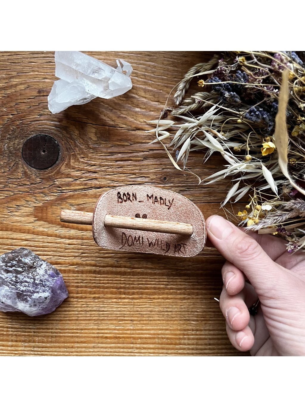 Spony vznikly propojením dvou kreativních duší z Beskyd. Maggie (born_madly) je vyrobila a já jsem je dozdobila ručním vypalováním. Jedná se o jedinečné kousky, které když neztratíte, budou Vám sloužit navěky. Jsou vyrobeny z pravé hovězí usně v přírodní barvě a ošetřeny pouze včelím voskem, takže si časem získají svou osobitou patinu.