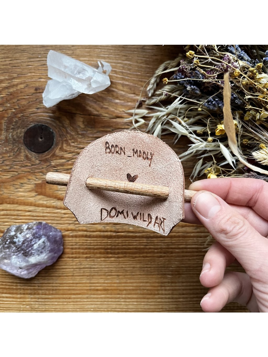 Spony vznikly propojením dvou kreativních duší z Beskyd. Maggie (born_madly) je vyrobila a já jsem je dozdobila ručním vypalováním. Jedná se o jedinečné kousky, které když neztratíte, budou Vám sloužit navěky. Jsou vyrobeny z pravé hovězí usně v přírodní barvě a ošetřeny pouze včelím voskem, takže si časem získají svou osobitou patinu.